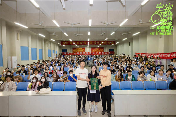 在福州大学映后活动现场,一位同学迫不及待地跟主创们分享了自己的感受,仿佛影片为她打开了一扇新世界的大门。“现在网络上喜欢用‘科幻片’形容浪漫的爱情”,那除去片中的科幻元素,“我觉得这依旧是一部真正的‘科幻片’,因为它让我感受到了极致的浪漫,看的时候很想哭”。她表示非常喜欢主角团迷失在丛林里那一段“很有《桃花源记》的感觉。几人沿着一条小溪曲径通幽,很有诗意”。而另一位眼尖的同学第一次观影就发现了影片中一个全新隐藏彩蛋,听着她的分析,孔大山导演频频点头并投去赞许的目光,“你是第一个发现的人,而且比我想说的还要好,非常感谢”。看来电影《宇宙探索编辑部》又多了一位与主创们“脑电波”契合的有缘人,至于彩蛋的具体内容,就请大家4月1日去电影院亲自寻找吧。