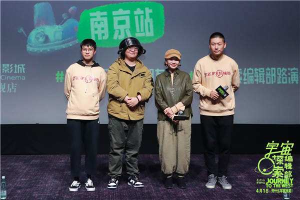 3月30日,《宇宙探索编辑部》“外星人驻地球联络员招募大会”全国路演来到第十三站南京,导演兼编剧孔大山、领衔主演艾丽娅、编剧兼主演王一通继续在宇宙尽头寻找同频有缘人。在东南大学,同学们纷纷踊跃发言分享。“有欢乐也有感动”一位博士生说,从一开始抛出一个个疑问到后来逐一解答,“最后就像《桃花源记》一样豁然开朗”。另一位女同学认为,虽然影片中有大量接地气的“乡土气息”,“却拼凑出了一种宇宙特有的浪漫颜色”,她非常喜欢。还有一位深受影片中唐志军触动的同学说,“敢于追寻自己相信的事物是非常值得尊敬的一种精神,很感谢主创们能带来这部电影”。校园活动的最后,两位扮成“被外星人绑架”的同学向主创们送上了极具南京特色的礼物,显然他们的“脑电波”已然与影片“同频共振”,让“外星人驻地球联络站”再添新成员。