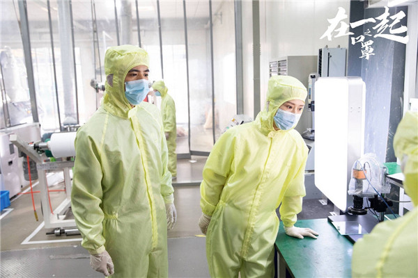 精彩的表演离不开演员背后的付出。拍摄《在一起之口罩》时正值炎热的7月,海清身穿黄色无菌服,戴上口罩和手套,拍摄完工厂戏份后早已满身是汗,身体虚脱,手套还因为黏上了汗水难以脱下。正是因为亲身经历了口罩生产过程,演员们才更加深入地了解到口罩工人的不易,对他们乃至所有在疫情期间辛苦付出的人产生了更多敬意。